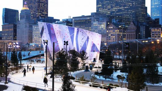 A unique skating experience awaits you in downtown Chicago at Maggie Daley Park. Enjoy skating on a ribbon, surrounded by trees, bushes and other natural aspects, with the city skyline in view.